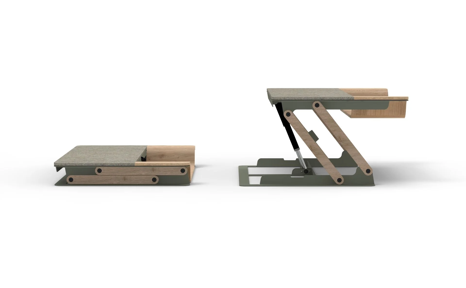We worked to create a desk riser that fits in with the home or contemporary working environment with innovative motion components without compromising the functionality.